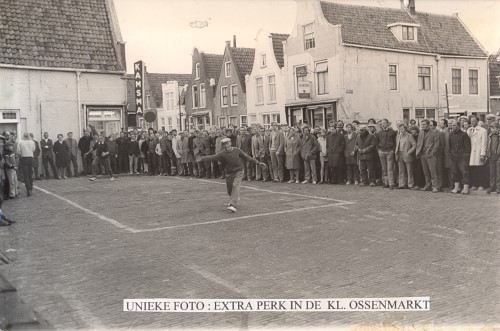 Een optie waar we ook mee aan de slag zijn gegaan is het 6e perk. In klein comité hebben we onderzoek gedaan naar een geschikte plaats nabij de Lanen. Na de nodige metingen hebben we een aanvraag ingediend bij de Gemeente Harlingen om het perk op de Kleine Ossenmarkt weer in ere te herstellen. In de jaren ’60 en ’70 werd hier ook al gekaatst getuige de foto. Afgelopen weekend hebben we voor deze historische optie groen licht gekregen. Het gebruik van perk 6 is zeer noodzakelijk geworden omdat we als organisatie definitief hebben besloten om de damesgroep op te splitsen.