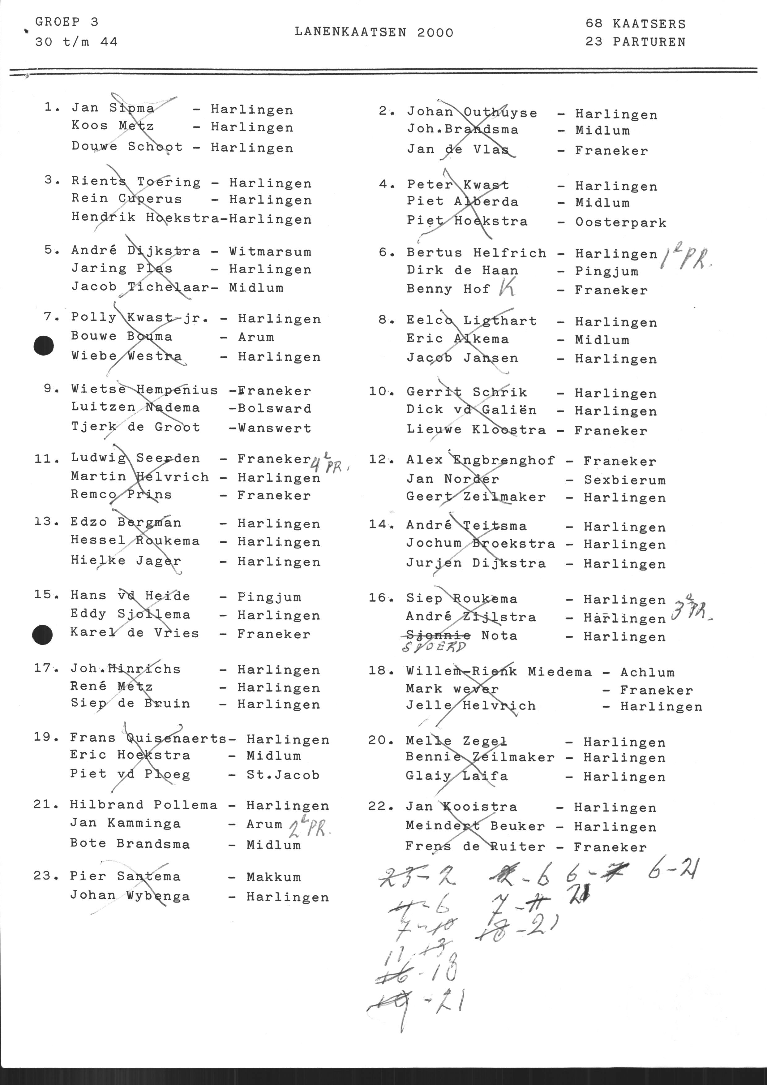 partuur kaatsercode volledige naam resultaat koning