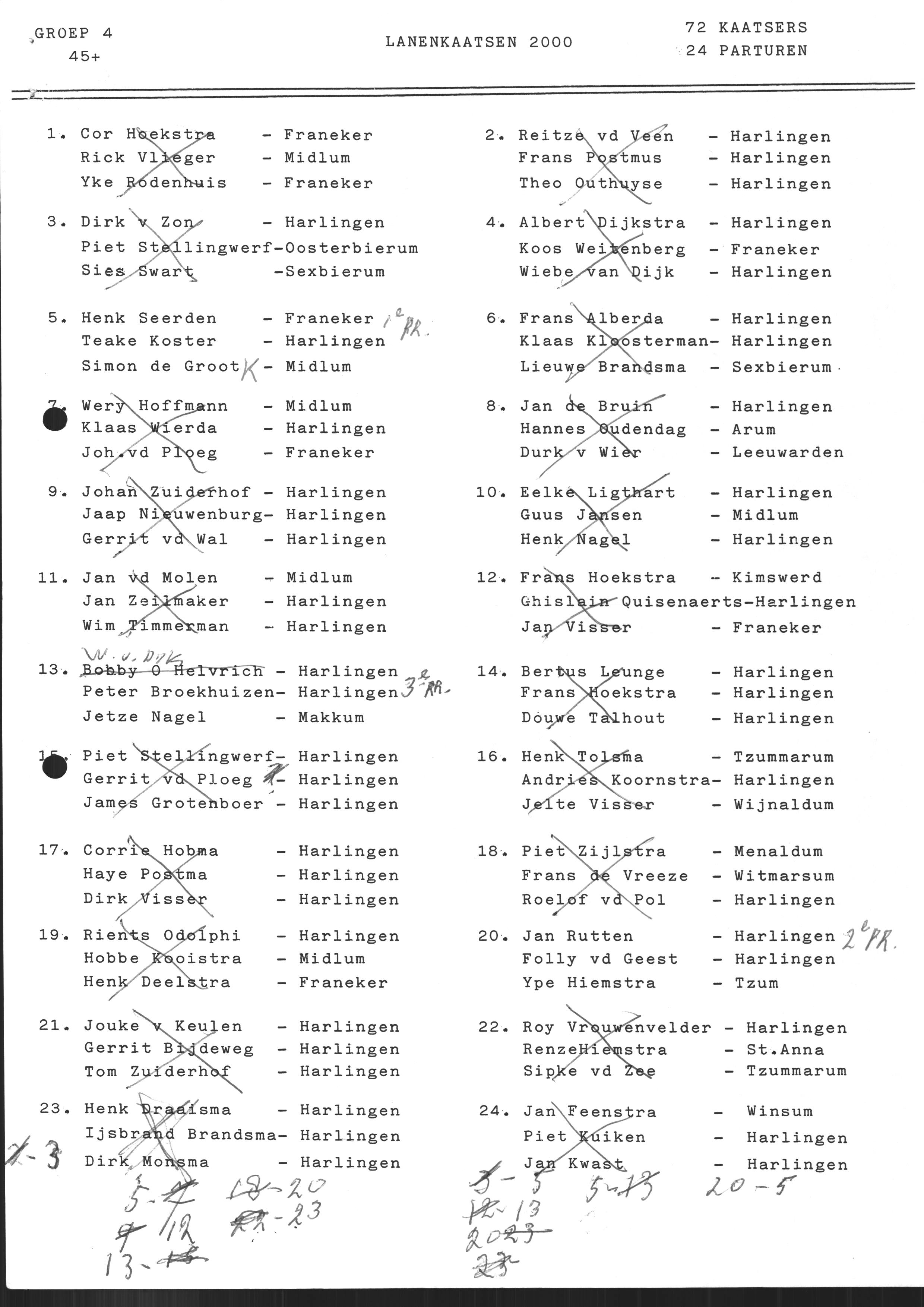 partuur kaatsercode volledige naam resultaat koning